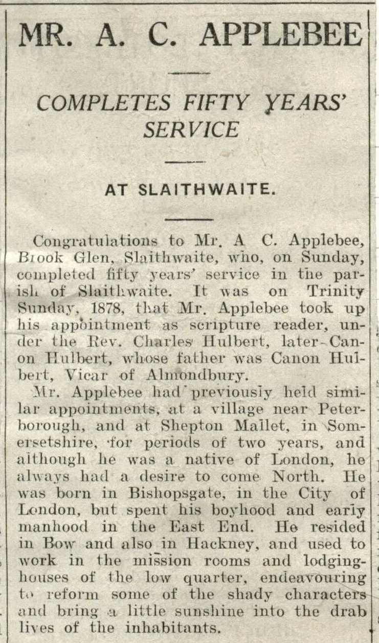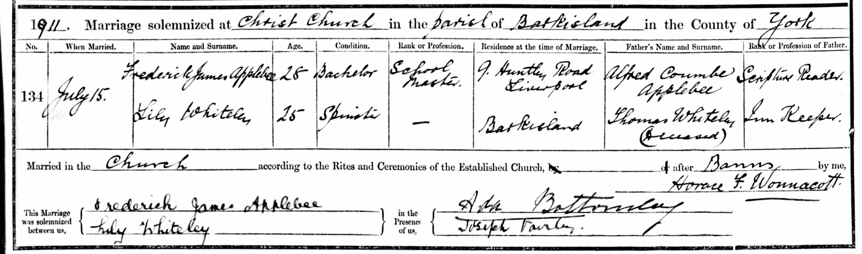 Huddersfield in 1882 where his father was the Scripture Reader of St
