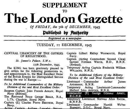 January 1945 and later on in the year appointed to the Most Excellent