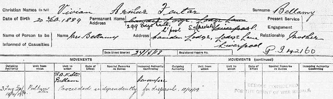 Vivian was born in Fazakerley 1889 and educated at Merchant Taylors in