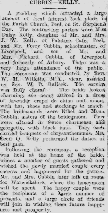 | 30th Dec 1922 (Percy's dad lived on the Isle of Man) |