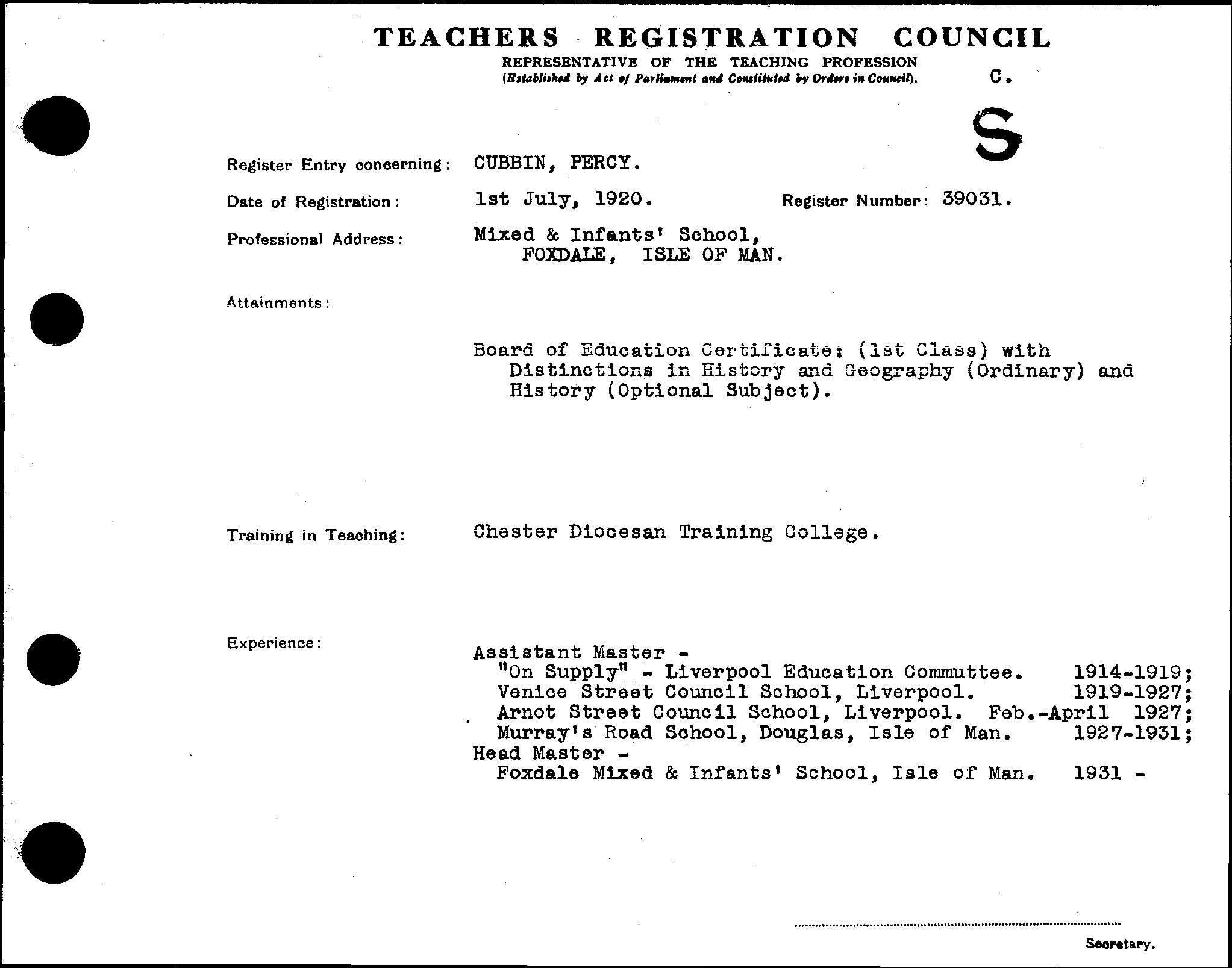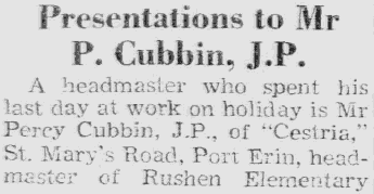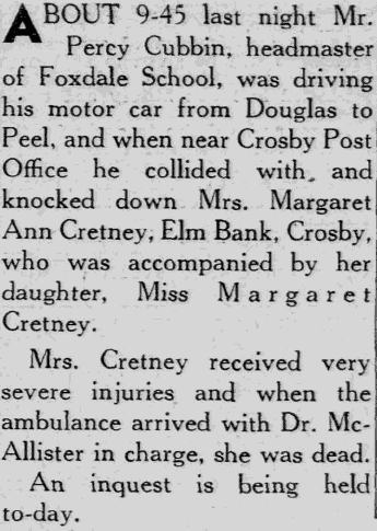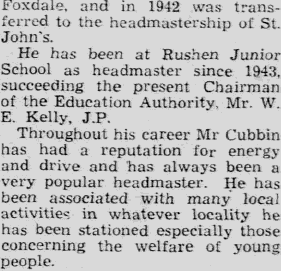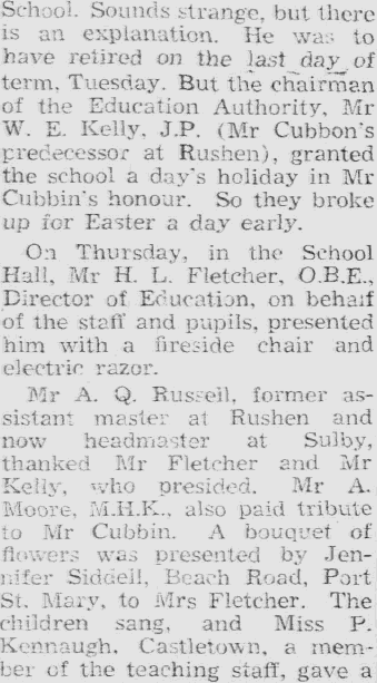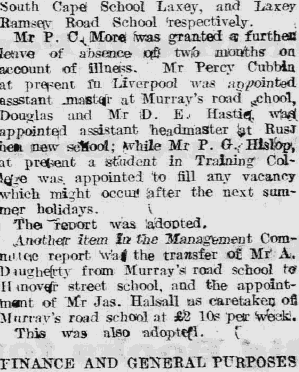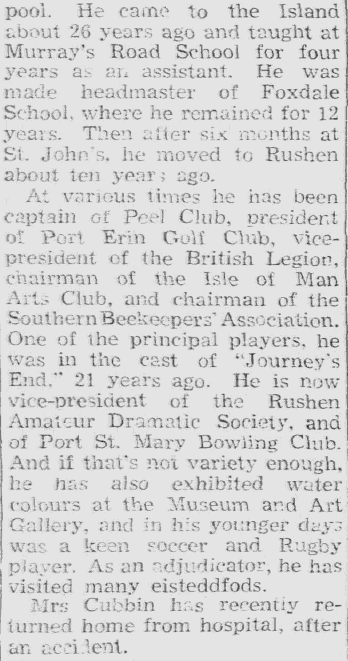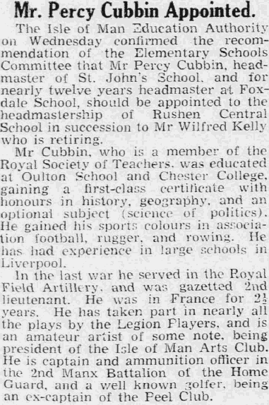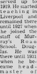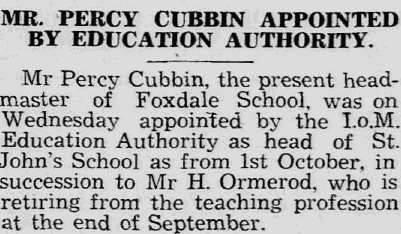 21st Oct 1931 - Appointed Headmaster of Foxdale |