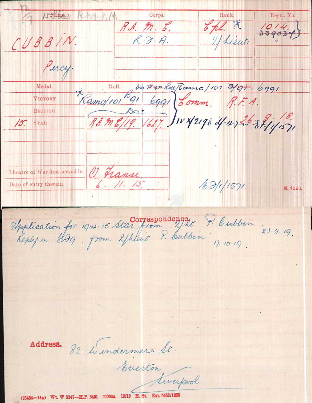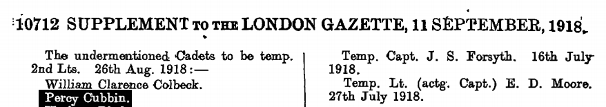 2/Lt PERCY CUBBIN