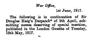 was "mentioned in despatches" in