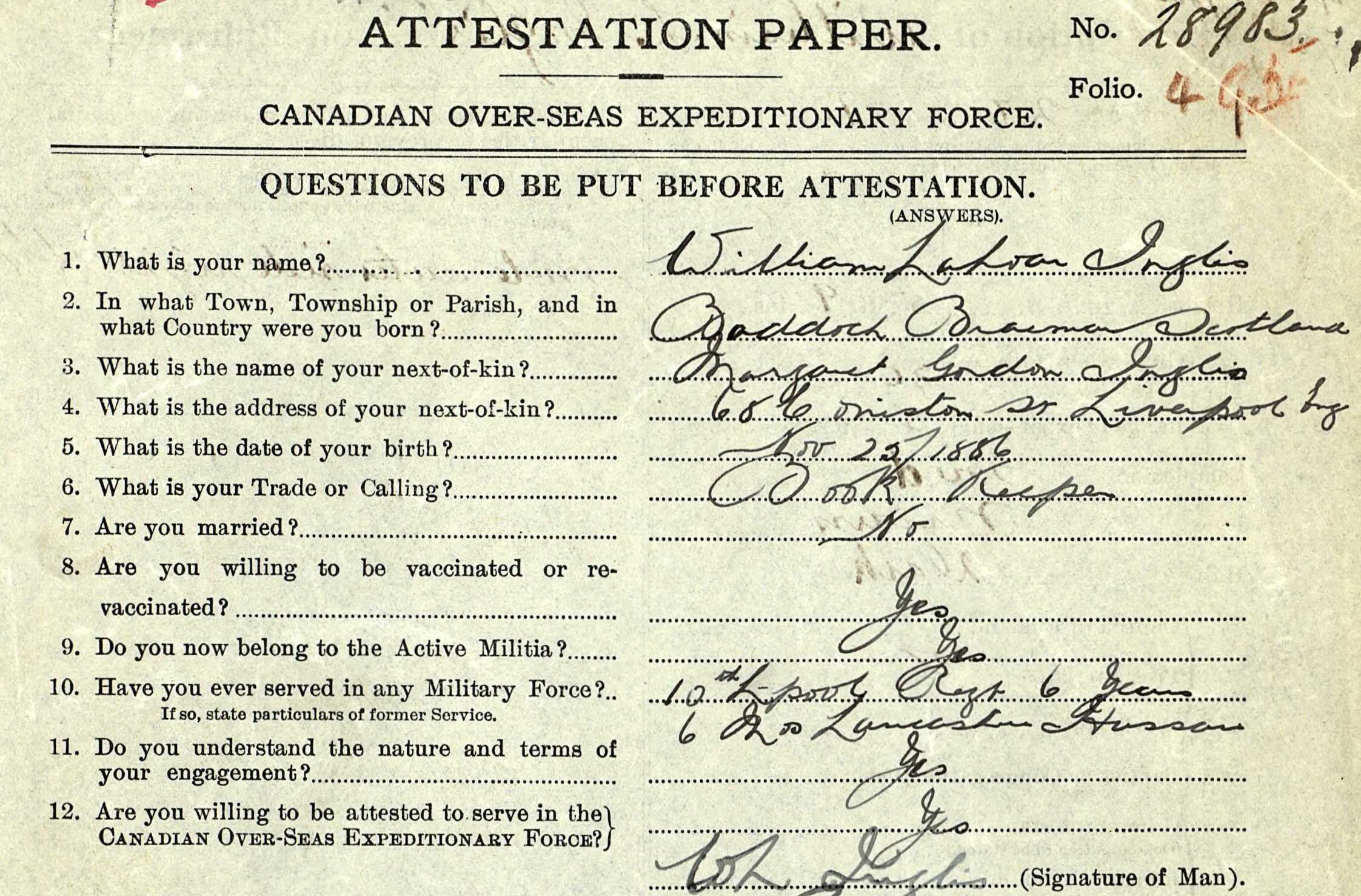 England in October 3rd, 1914. The 16th Battalion was part of the 3rd