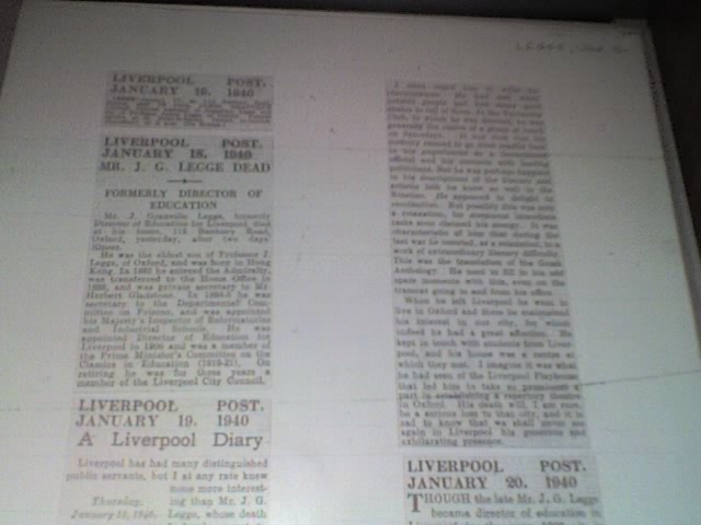 * note: For further details of James Legge’s early life and the work and influence of his father, James Legge, in Scotland, Malacaa, China and Oxford, please see Norman Girardot, "The Victorian Translation of China" and/or Dr Lauren Pfister, "The Whole Duty of Man".