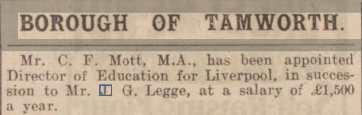 Eldest Son of Professor James Legge and Hannah Mary Johnstone.