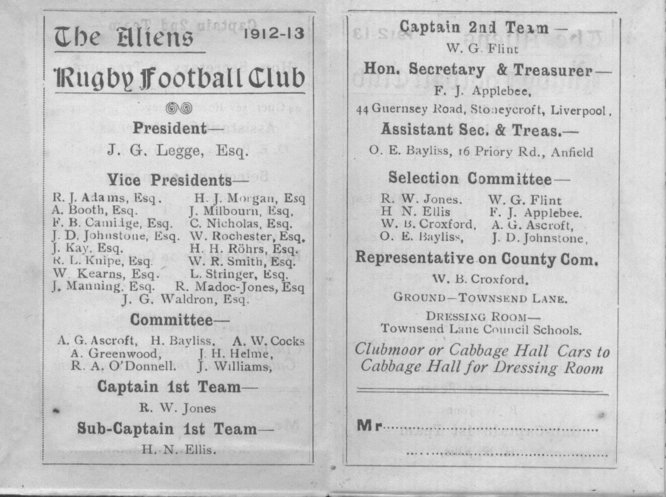 William James Manning was a Vice President of the Aliens and documented in the 1912/13 handbook but there is no record of him playing rugby.