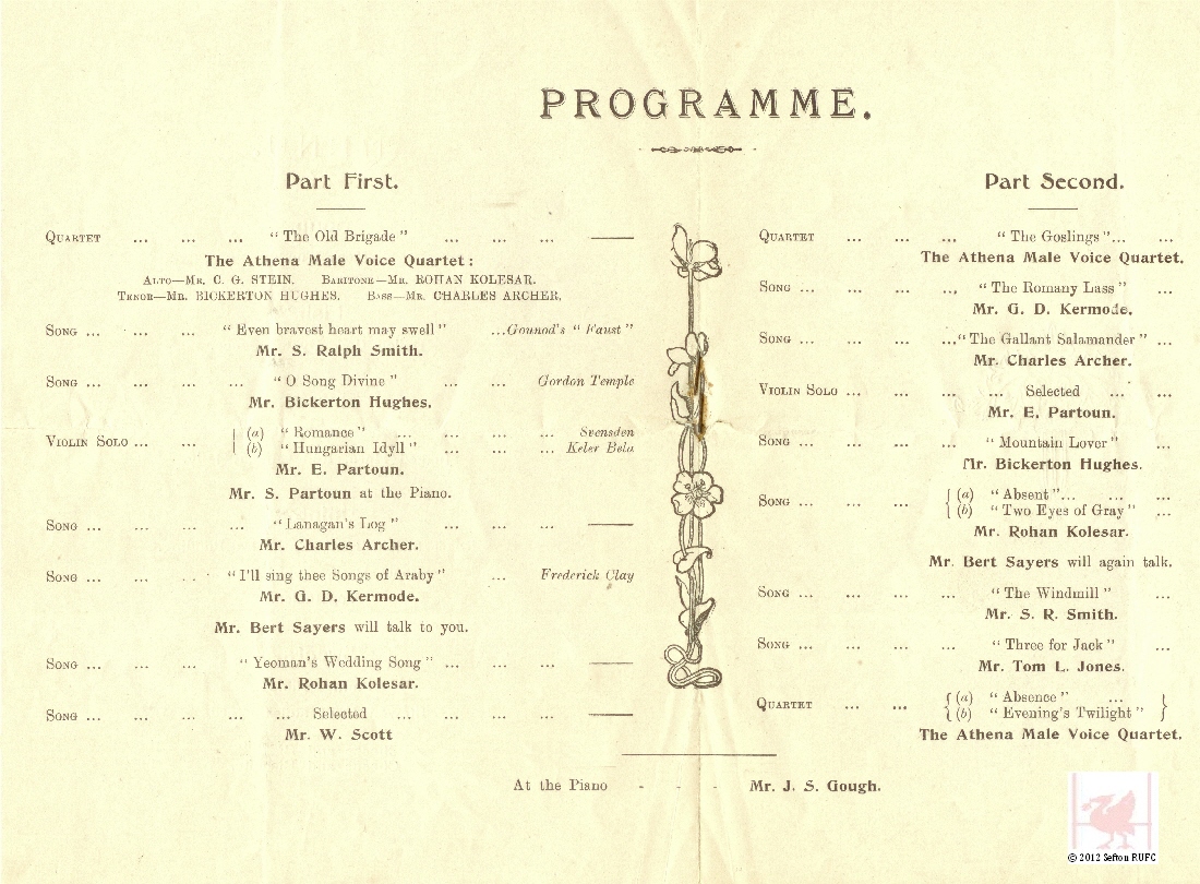 At some time he must have encountered members of the Aliens as he was in the programme of the very first formal annual dinner in 1909 where he sang