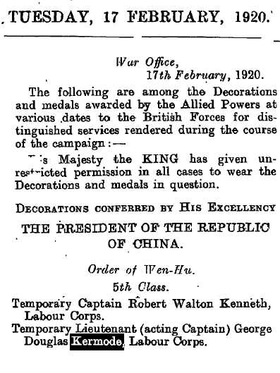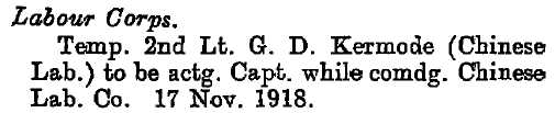 Royal Army Medical Corps. China had entered the war in 1917, and a