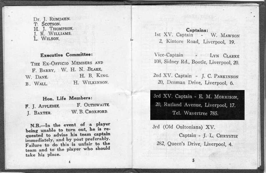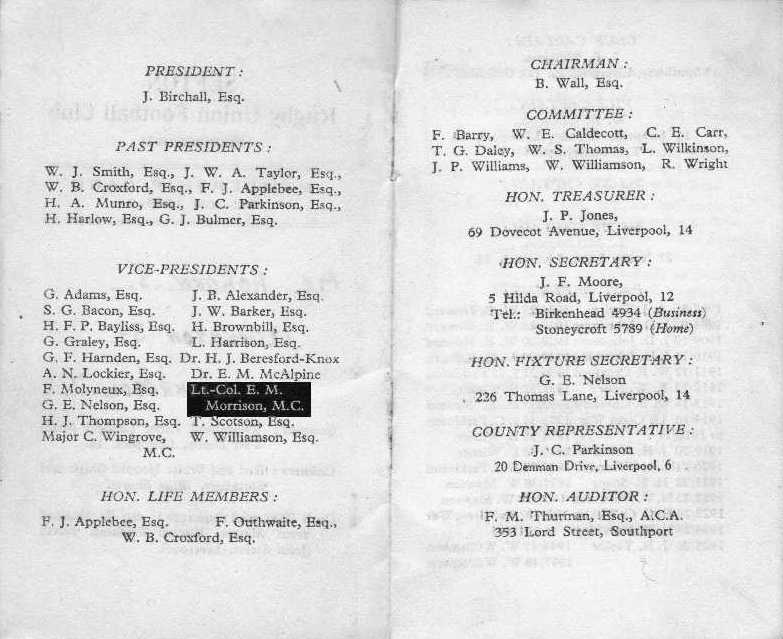 Born in Ormskirk,1911 E.M.Morrison joined Sefton just before World War 2 and became 3rd team Captain.