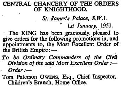 In the New Years Honours List of 1951 TPO was awarded the C.B.E for his diligent work.