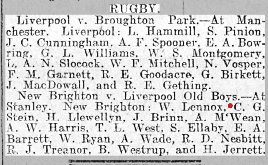 Walton C.E. School and is seen playing rugby for New Brighton in 1905.