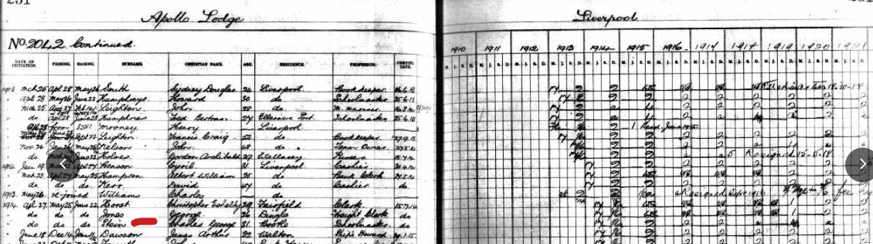 In 1914 he joined the the Masons at Apollo Lodge, Hope Street (records