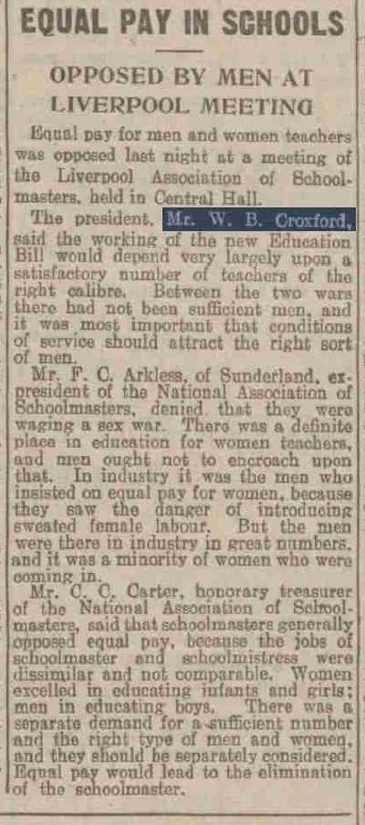 Mr Croxford, who lived at Lyndhurst, Leyfield Road, West Derby. Liverpool, was headmaster of Barlows Lane County School, Aintree, until his retirement.