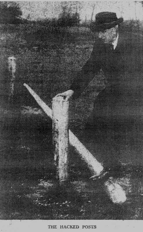 Three times in the past months their pavilion has been broken into and subjected to wrecking, and on Saturday the first members to arrive at the club found that a set of the goalposts on the first team pitch had been chopped down about a yard above the ground.