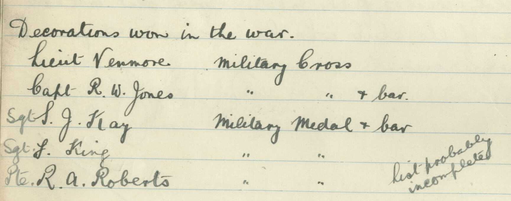 According to Fred Applebee's committee minutes the list of decorated members was 'incomplete.'