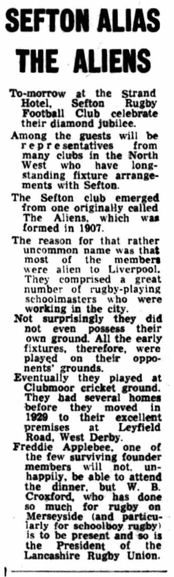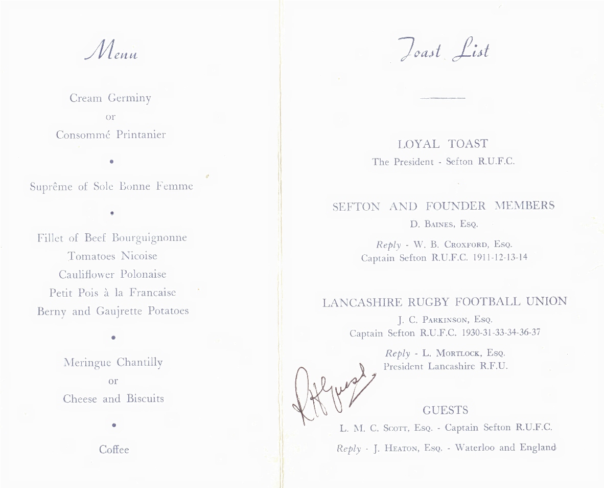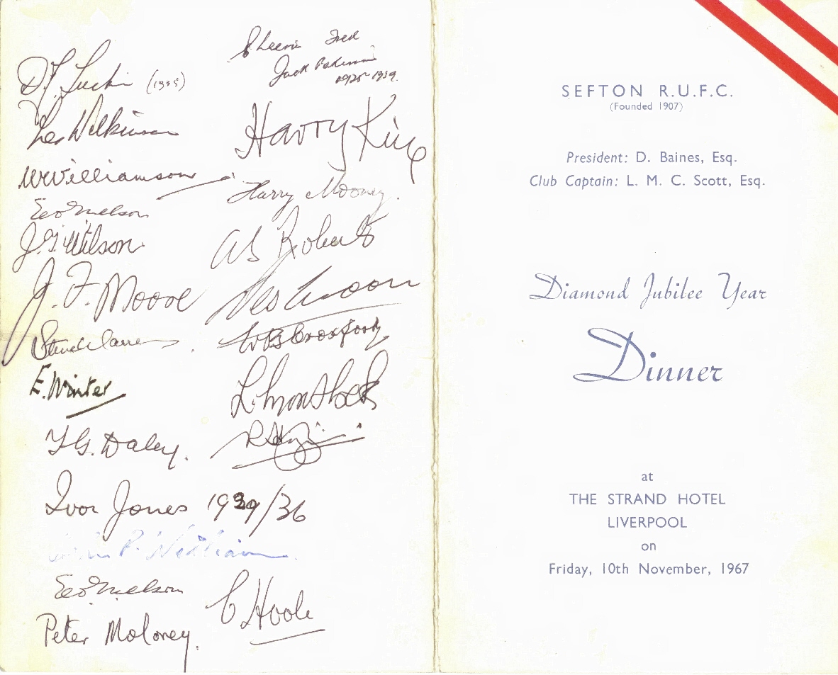 Tomorrow at the Strand Hotel, Sefton Rugby Football Club celebrate